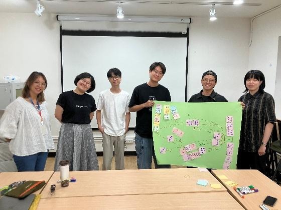最終因時間關係,參與者僅針對當前最有感的退輔藝術家社群進行深入討論,並提出相對應的指標關鍵字。有趣的是,參與者在分享過程中所提出的關鍵字彼此之間時常包含著因果關係,或者可作為意識與行動方案的連結,因此能夠組裝為數個關鍵字串,甚至最終成為一種永續循環。